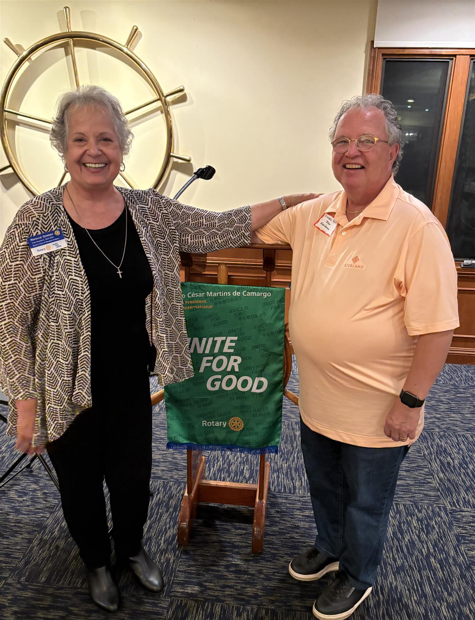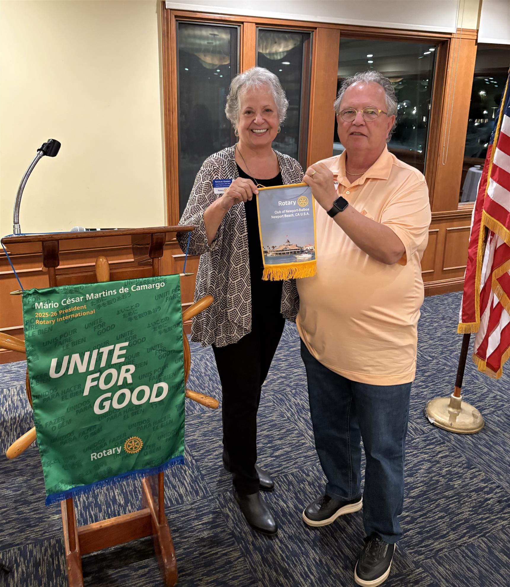 John presented our Club with a visiting Rotarian banner from the Rotary Club of Newport-Balboa.