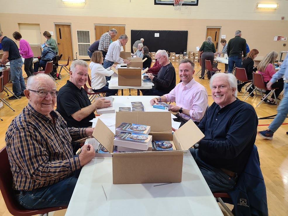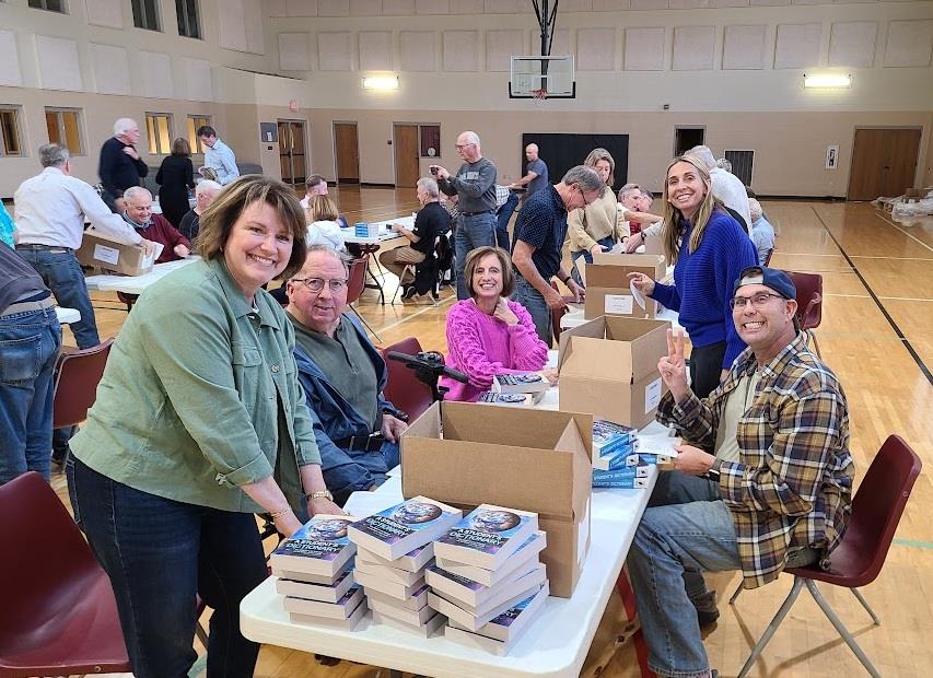 They were then loaded into the the vehicles of volunteers set up to deliver the dictionaries.